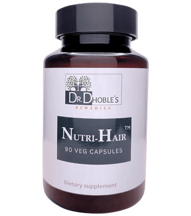 Revitalize your hair with Nutri-Hair Formula! This Ayurvedic blend combines Bhringraj and Amla for healthy growth and nourishment. Vegan and gluten-free.
