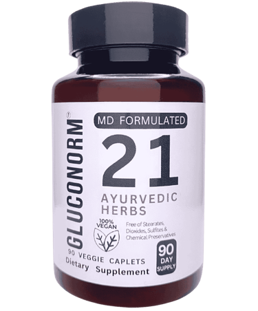 GlucoNorm: Natural blood sugar support with 21 Ayurvedic herbs for insulin sensitivity, metabolism boost, and pancreatic cell regeneration.